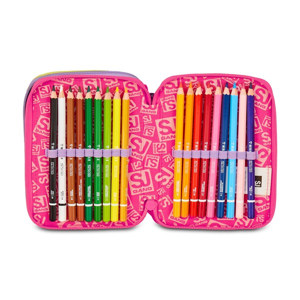 Astuccio 3 Zip SJ Gang Fable Journey - 2026 Perfetto per accompagnare le giornate scolastiche dei bambini, questo astuccio a triplo scomparto è la soluzione ideale per organizzare al meglio tutto l'occorrente. Con il suo design colorato, è pensato per bambini della scuola elementare. Realizzato in resistente tessuto di poliestere, questo astuccio unisce praticità e qualità, perfetto da abbinare a qualsiasi zaino scolastico. Altre caratteristiche: CONTENUTO 45 PEZZI: 1 penna cancellabile blu, 1 penna sfera rossa, 18 pastelli a colori 4.0 esagonali, 18 pennarelli superlavabili punta 3.0, 1 matita grafite esagonale HB, 1 colla gialla azzurra, 1 gomma bianca con cartoncino stampato, 1 temperino barilotto 2 fori, 1 righello trasparente, 1 matita bicolor rosso/blu, 1 paio di forbici in metallo Tessuto: Poliestere. Tasche: Triplo scomparto Dimensioni: 12,5 x 20 x 7 cm. MOLTO BELLO,COLORI FANTASTICI......ASSOLUTAMENTE DA COMPRARE. CONSIGLIATISSIMO!!!!!!!!!
