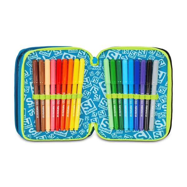 Astuccio 3 zip SJ Gang. Dotato di 3 scomparti completi di tutto il materiale necessario per fare al meglio i tuoi lavori di scuola, puoi abbinarmi a uno zaino o a un trolley SJ Gang. Dimensioni 12,5 x 20 x 7 cm Altre caratteristiche CONTENUTO 45 PEZZI: 1 penna cancellabile blu Frixion, 1 penna sfera rossa, 18 pastelli a colore MINAPRO 4.0, 18 pennarelli PUNTAPRO 3.0, 1 matita grafite esagonale HB, 1 colla gialla azzurra, 1 gomma bianca con cartoncino stampato, 1 temperino barilotto 2 fori, 1 righello trasparente, 1 matita bicolor rosso/BLU, 1 paio di forbici in metallo Tasche Triplo scomparto Tessuto Poliestere