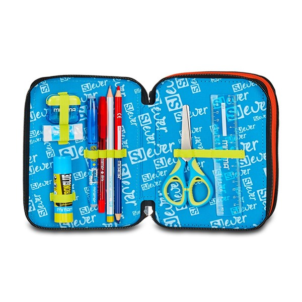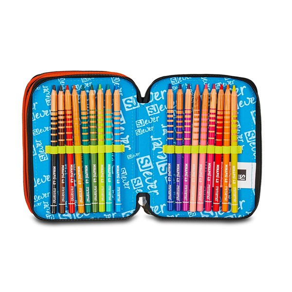 Astuccio 3 Zip Rules Boy SJ Ever - Collezione Seven Back to School 2025-2026 Questo astuccio Seven 3 zip ha tre scomparti in cui troverai tutto il materiale necessario per la tua giornata di scuola. A te non resta altro che abbinarlo a uno zaino o trolley Seven. Dimensioni: 12,5 x 20 x 7 cm Contenuto 45 pezzi: 1 Penna cancellabile blu, 1 Penna a sfera rossa, 18 Pastelli, 18 Pennarelli, 1 Matita HB, 1 Colla, 1 Gomma, 1 Temperino barilotto 2 fori, 1 Righello, 1 Pastello tondo 4.0 bicolor, 1 Forbice in metallo Tasche: Triplo scomparto Tessuto: Poliestere