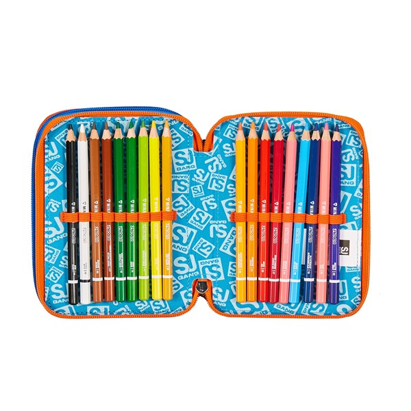 Sono il coloratissimo Astuccio 3 zip SJ Gang. Dotato di 3 scomparti completi di tutto il materiale necessario per fare al meglio i tuoi lavori di scuola, puoi abbinarmi a uno zaino o a un trolley SJ Gang. Dimensioni 20 x 12,5 x 7 cm Altre caratteristiche Contenuto 45 pezzi: 1 Penna cancellabile blu, 1 Penna a sfera rossa, 18 Pastelli, 18 Pennarelli, 1 Matita HB, 1 Colla, 1 Gomma, 1 Temperino barilotto 2 fori, 1 Righello, 1 Pastello tondo 4.0 bicolor, 1 Forbice in metallo Tasche Triplo scomparto Tessuto Poliestere