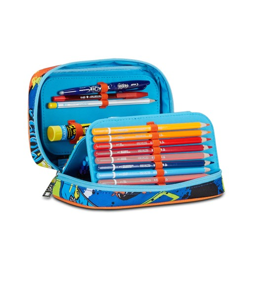 Ciao! Sono l’astuccio Speed Case SJ Gang! Dotato di una comoda apertura tramite un’unica zip e di tutto il materiale necessario per esprimere al meglio la tua fantasia, puoi montarmi e smontarmi a tuo piacere. Infatti, all’interno ho plance removibili con elastici porta penne e matite, che puoi rimuovere del tutto. Così puoi riempirmi come preferisci. Comodo, pratico, versatile e coloratissimo, non ti resta che abbinarmi a uno zaino o a un trolley SJ Gang! Dimensioni 13,5 x 21 x 6,5 cm Altre caratteristiche Apertura singola tramite zip, plance amovibili, elastici interni per cancelleria. Contenuto 44 pezzi: 1 Penna cancellabile blu, 1 Penna a sfera rossa, 18 Pastelli, 18 Pennarelli, 1 Matita HB, 1 Colla, 1 Gomma, 1 Temperino barilotto 2 fori, 1 Righello, 1 Forbice in metallo Tessuto Poliestere