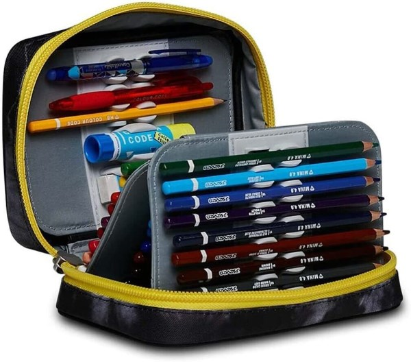 SEVEN ASTUCCIO SPEED PAD DIMENSIONI: 15 x 21 x 7 cm ALTRE CARATTERISTICHE: Apertura singola tramite maxi zip, plance amovibili, agganci flessibili in gomma per cancelleria. Astuccio lavabile. CONTENUTO 44 PEZZI: 18 Pastelli a colori mina 4.0 SEVEN COLOUR CODE, 18 Pennarelli lavabili SEVEN COLOUR CODE, 1 Penna cancellabile blu, 1 Penna a sfera rossa COLOUR CODE, 1 Matita grafite COLOUR CODE, 1 Gomma, 1 Temperino, 1 Colla stick COLOUR CODE, 1 Righello trasparente, 1 Forbice in metallo con maniglia in plastica. TESSUTO: Poliestere Dotato di una comoda apertura tramite maxi zip e di plance con sistema a incastro senza elastici per inserire più facilmente penne e matite che troverai nell’apposita bustina, puoi montarmi e smontarmi a tuo piacere e sono interamente lavabile. Comodo, pratico, versatile e coloratissimo