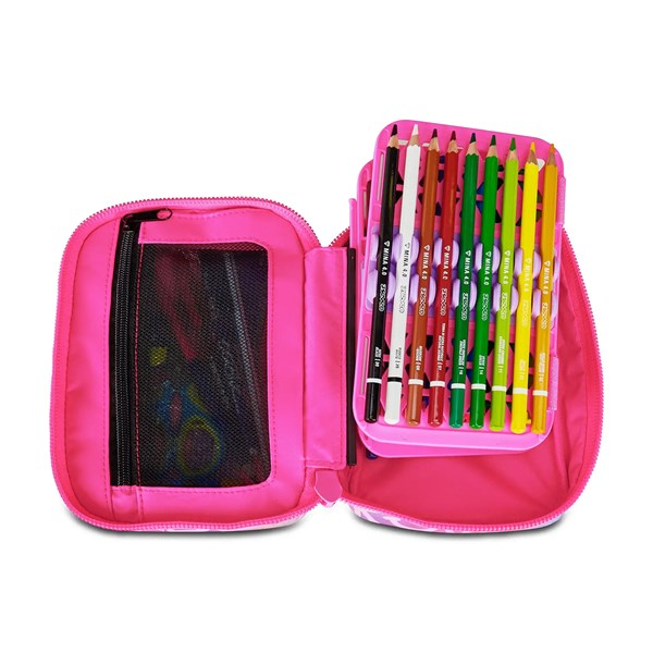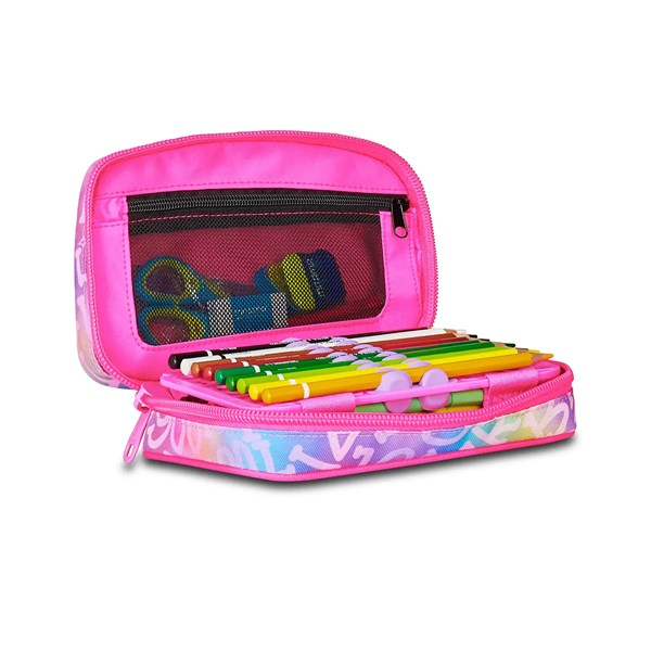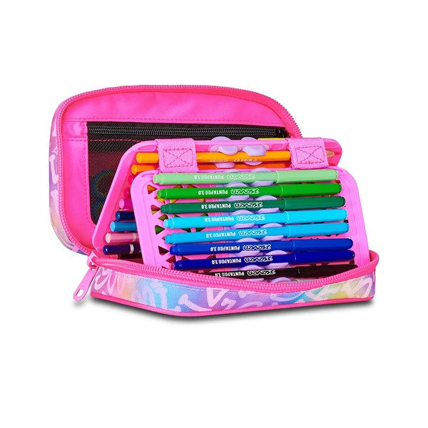 Descrizione completa Design Innovativo e Lavabile L’astuccio Speed Pad+ SJ Gang Fantasys Girl è progettato per offrire praticità e stile. Interamente lavabile, ha una struttura componibile e resistente, perfetta per la scuola di ogni giorno. Sistema a Incastro Senza Elastici Grazie alle plance interne amovibili con agganci in gomma, è facilissimo organizzare penne e matite senza elastici, per un utilizzo veloce e intuitivo anche dai più piccoli. Contenuto Completo per la Scuola L’astuccio contiene 44 pezzi essenziali: penne, matite, pastelli, pennarelli, righello, colla, forbici e altro ancora. Tutto in un unico accessorio compatto e ordinato. Apertura con Maxi Zip e Tasca Interna Dotato di apertura rapida tramite maxi zip e di una tasca interna per cancelleria, garantisce accessibilità e ordine anche durante le giornate più intense. Perfetto da Abbinare a Zaini SJ Gang Con le sue grafiche colorate e coordinate, è ideale da abbinare a zaini e trolley SJ Gang per un set scuola completo, funzionale e alla moda.