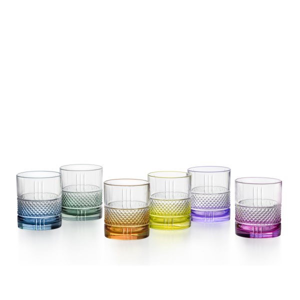La nuova linea Brillante Color nasce per arricchire la tua tavola di sei colori intensi, che rendono ancora piu` splendente il design dei bicchieri. Personalizza i posti tavola con i tuoi colori preferiti e divertiti a creare sempre nuove combinazioni e accostamenti cromatici. Per un arredo tavola fuori dagli schemi, perfetto per ogni occasione. cl 34 oz 11,04 h. 94 ø max 82 mm 6×2