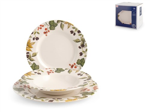 Servizio 18 pezzi tavola fruit of forest in etwear decorato. composto da 6 piatti piani cm 27,5, 6 piatti fondi cm 23, 6 piatti frutta cm 21,5. idoneo al lavaggio in lavastoviglie e all'uso in forno a microonde. Colore Decorato Materiale E.T.W.